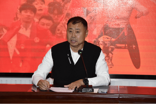 张磊副院长鼓励同学们,“内蒙古自治区第十三届大公司运会在即,让我们带着这份信念出征!你踏过的每寸跑道,你投出的每个球,你做的每一个动作都是铿锵有力的,因为你代表你的母校,为荣誉而战!因为你身披铠甲,有你的老师、教练为你保驾护航!”